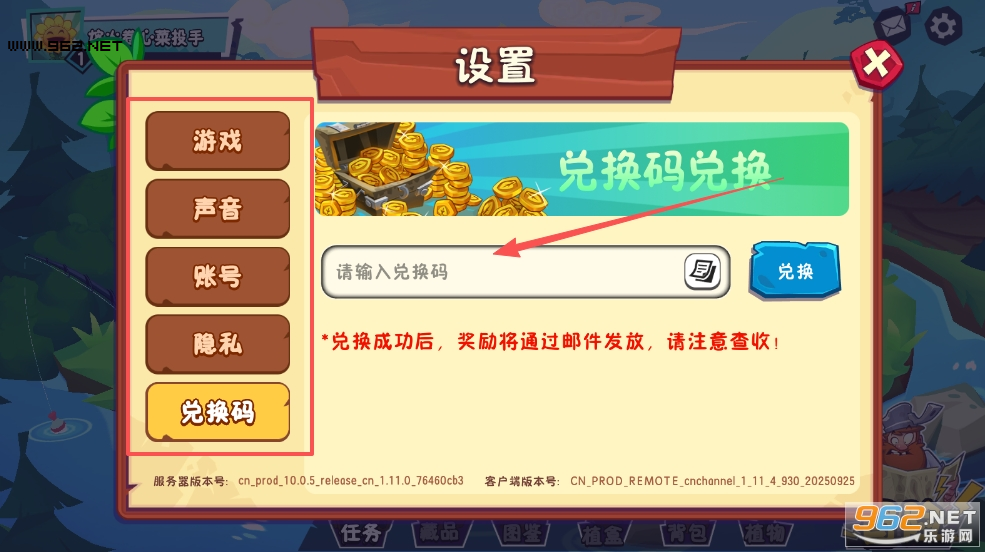 2、在兑换码栏目内,输入小编提供的有效兑换码,完成游戏福利兑换。