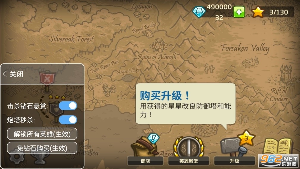 2、塔伤害巨高(进入关卡前开启)