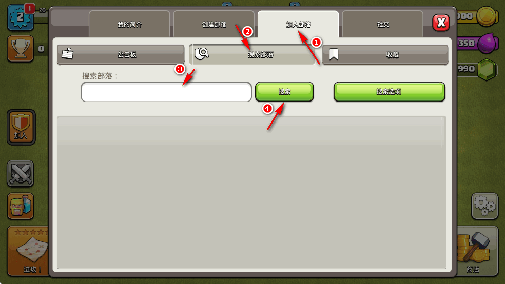 点击【加入部落】-【搜索部落】,输入关键字点击【搜索】