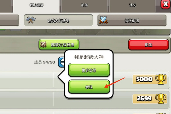 1、在游戏主页找到部落城堡建筑,点击【部落】。