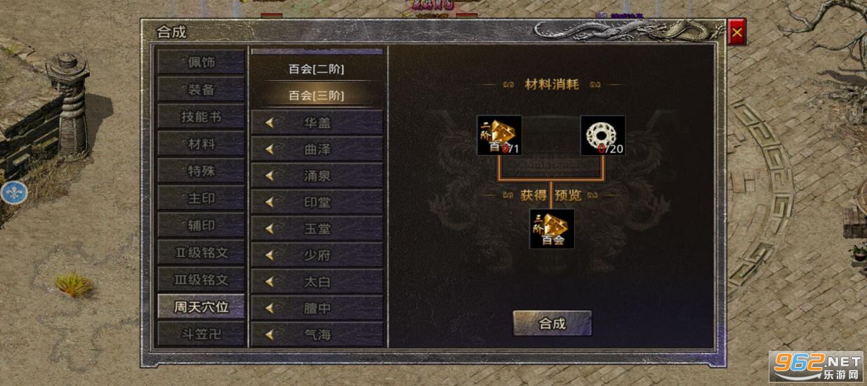 2.通过分解穴位,获得山海玉,通过(合成-周天穴位),去合成需要的穴位佩戴