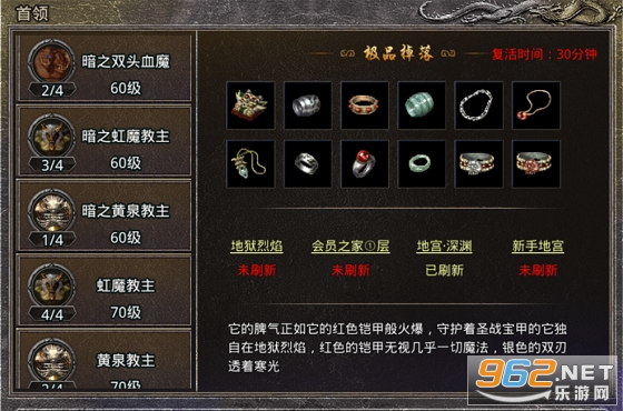 每次活动开始后,可以通过NPC传送至上述地图或入口,每个地图刷新2只魔影巨人boss,boss掉落非常可观,除了必定掉落的10倍经验点外,还可掉落高级装备,是否能一波暴富,全看个人运气了哦。