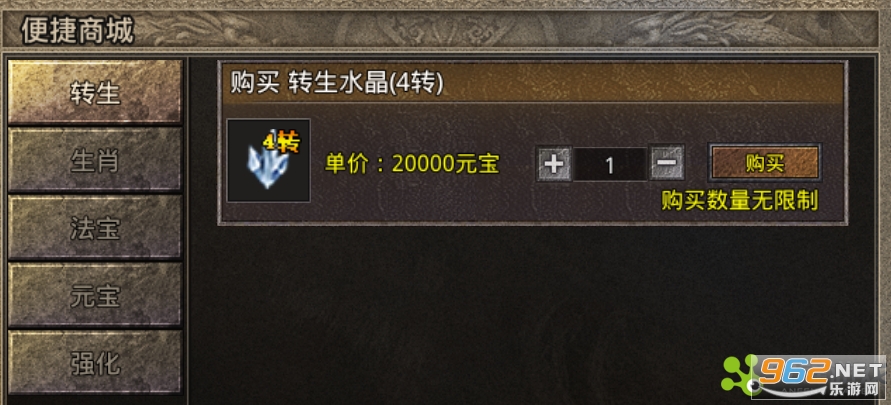 前期别乱用元宝,别疯狂点四象。因为元宝除了可以购买修为,还可以购买转生材料以及一些必需药品。