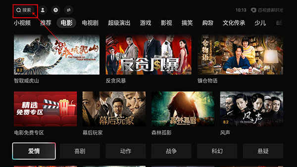 2、进入应用后,左上角的搜索功能能够让用户搜索想看的影片;