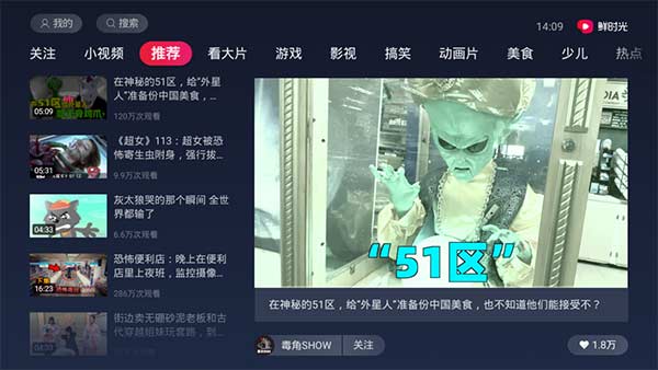 鲜时光tv版是专为电视盒子设计的一款家居电视app应用。相较于传统单一的TV直播软件,鲜时光TV版将互联网上几乎全部的精彩短视频集成在其中,不仅基于西瓜视频大数据内容,还大量收录了有教育、美食、旅行、文化、游戏、搞笑等多元素的内容,除了拥有电影、电视剧、综艺和动漫四种模块,鲜时光TV版还划分了看大片、热点、推荐等各种栏目,以便用户快捷地找到所需内容。从图片到影视,从文字到资讯,涵盖各行各业,无论你喜欢哪种类型的视频内容,鲜时光TV版都能够满足你的需求。