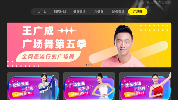 1、在本站下载安装并打开BesTV当贝健身tv版,进入首页,用户可以在这里看到各种健身入门,减脂瘦身等课程。