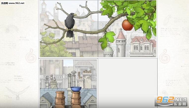 游戏中一个画面会被分为四个部分,每一个部分乍看上去并没有什么太多的联系,而玩家需要将游戏中的不同的背景和角色通过移动的方式以正确的方式搭配起来,才可以顺利的让故事可以继续推进,这样的玩法还是非常有创意的,而且游戏中所有的场景都是采用了手绘风格的美术设计,看起来也是很精致的。