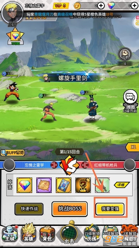 然后出击页面点击我要变强