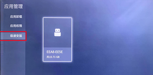 4、选择【应用管理】--【极速安装】,再选择右侧的U盘文件夹。
