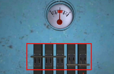 6、最后一扇门依旧打不开,将拉上左边三个把手,右边两个向下拉。