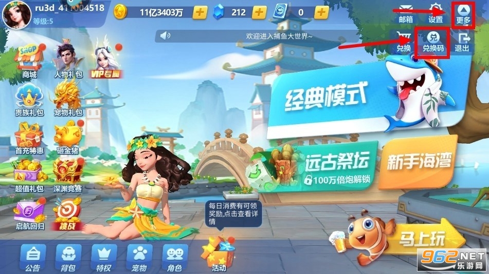 捕鱼大世界兑换码