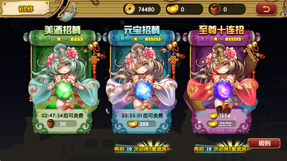 2、每消耗20美酒可进行1次美酒招募