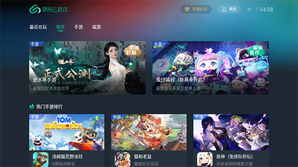 网易云游戏是网易游戏官方推出的云游戏平台,兼容性高,画面渲染能力强,低配手机电脑也能流畅运行不掉帧不卡顿。海量热门手机游戏、端游一键免下载游玩,用户在平台即点即玩,无需繁琐耗时的下载过程,不用担心手机存储空间不足,结合独家优化算法,极大降低对用户设备的资源消耗,更省电、不发热。此次给大家带来的是网易云游戏tv版app官方版,即网易云游戏电视端,用户在电视上就可畅玩各种3A大作,原神、明日方舟等等,有需要的用户可以下载使用。