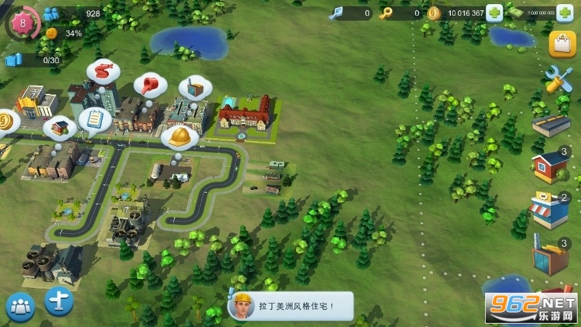 趣味的城市建造游戏,你将成为一个市长,发展自己的城市,建筑、人口、交通等都是你需要考虑的事情,不断地发展,打造繁华城市,提高收益,喜欢的朋友可以下载试试。