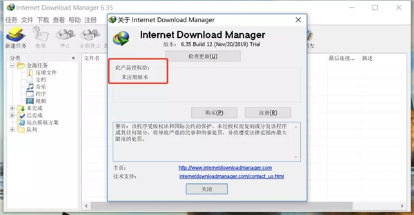 15、此时,安装的idm软件是未注册的,也就说,过了试用期就没法使用了。