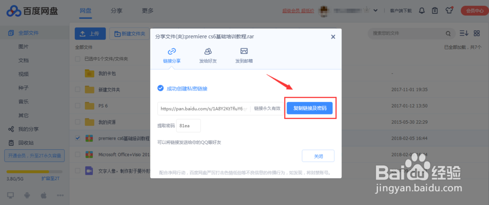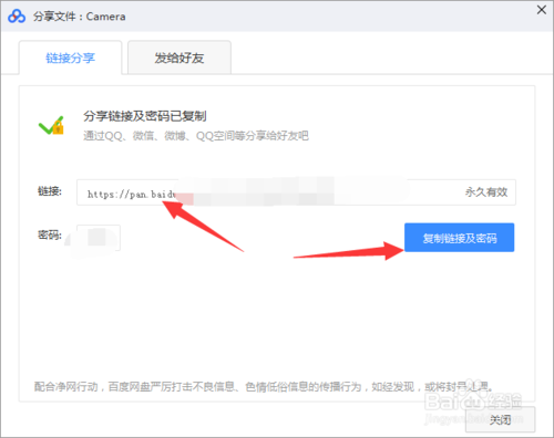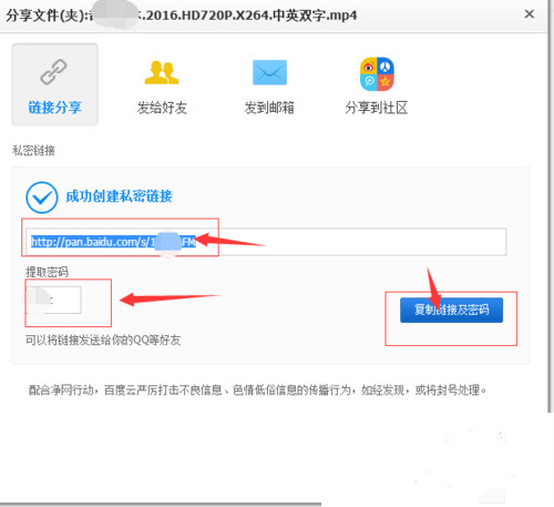 这个时候会出现一个链接,跟随机的提取码,然后我们点击复制【链接跟密码】