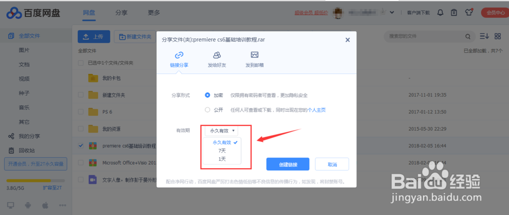 下方有效期可以根据自己需求进行选择,有1天,7天,永久有效,这里我选择永久有效为例,再点击创建链接