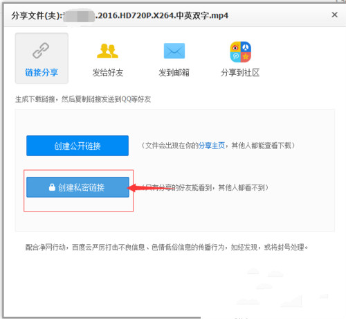 百度云网盘进行加密分享的具体操作方法