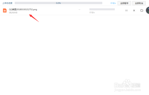 选择你想上传的文件然后选择存到云盘里就可以了,在传输列表里可以查看上传的进度。