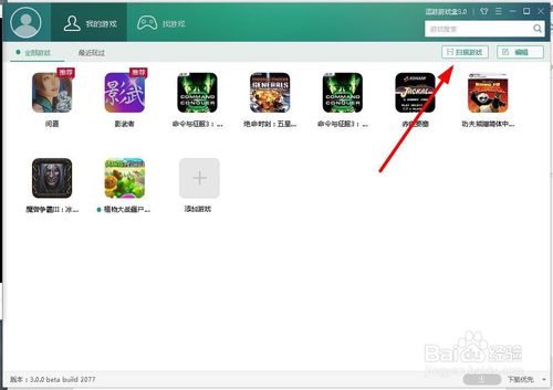 鼠标点击右边的(扫描游戏)按钮 (不是游戏盒下载的游戏也可以扫描出来)