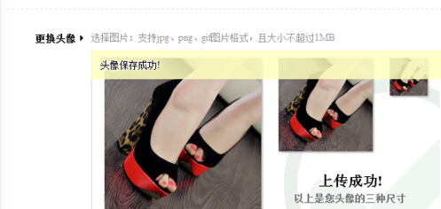 7、上传照片成功后,我们就会获得三种尺寸的头像照片,不过要注意图片不能太大,不能超过1M。