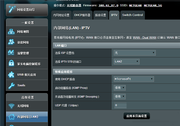 首先打开 内部网络-IPTV-lan端口-选择IPTV STB的端口 如下图(除lan1外其他皆可使用)选择后应用设置