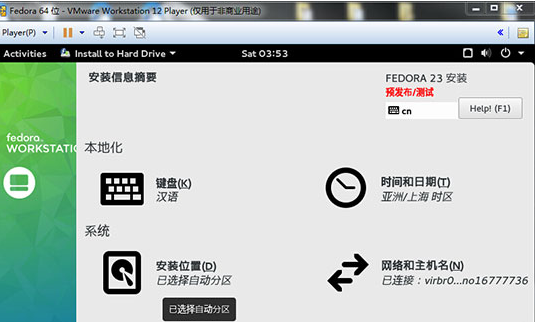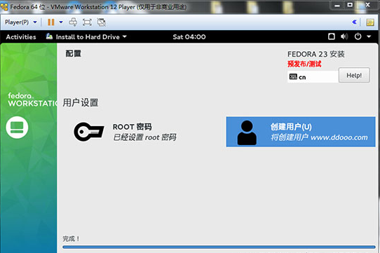 15、安装配置全部完成后,重启虚拟机就可以使用了Fedora 23系统了