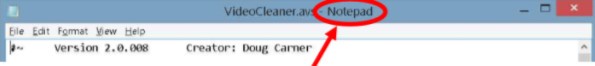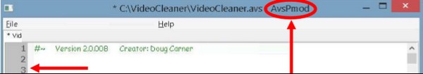 4、验证:双击鼠标桌面VideoCleaner图标。 如果你看到单词“AvsPmod”和行号(见下面的箭头),那么一切都是正确的你可以跳过这个页面。