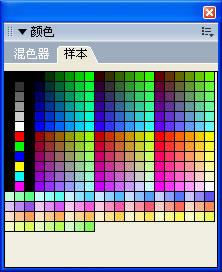 导出完毕后,启动Fireworks CS3,打开Fireworks CS3的“样本”面板,选择“样本”面板选项菜单中的“添加样本”命令,然后找到刚刚导出的ACT颜色表文件,这样就可以把所有的颜色都添加到Fireworks CS3的“样本”面板中来了,如图6.68所示。