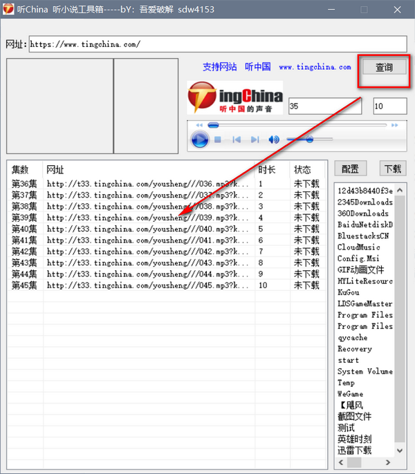 二、点击查询,就会出现书籍的信息和听书的集数,用户可以选择开始章节和跨度。
