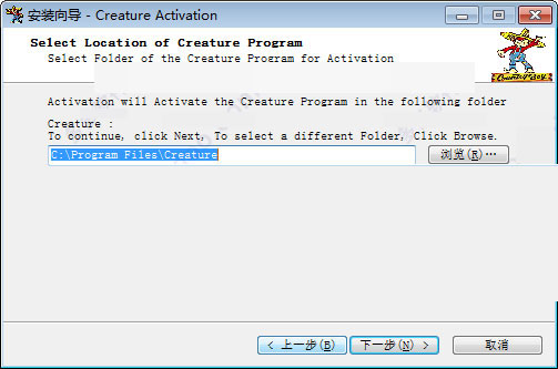 5、安装位置选择Creature安装根目录,如果安装原程序时没有更改,这里默认即可