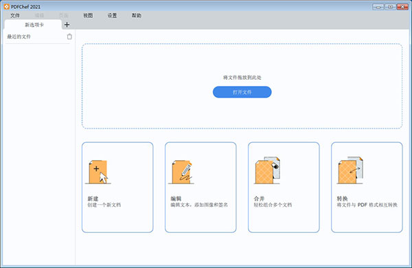 5、打开软件,如下图所示,以上就是有关PDFChef2021中文特别版所有安装教程,亲测有效,希望对你有所帮助。
