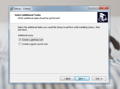 可以建立一个桌面图标,方便查找,勾选create a desktop icon便是。下面那个是在任务栏建立图标,看个人习惯选择。