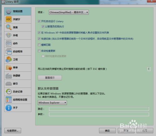答:鼠标移动到搜索栏右侧的三个点,然后点最后一个闪电图标,菜单里有少量Listary的选项。Listary选项-应用程序设置,点列表下的加号手动添加Eclipse的exe文件,然后勾掉exe前面的对勾,确定保存即可