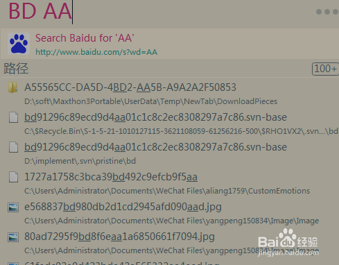 呼出搜索工具栏,双击CTRL(如果出现快捷键冲突,要在快捷键设置里重新设置),在桌面或者是explorer任何界面下,搜你想要的文件,直接回车是打开,ctrl+enter打开文件夹,支持后缀,比如“.mp4”