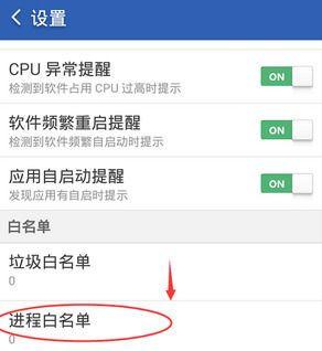 4、进入设置界面,点击【进程白名单】