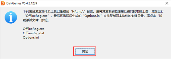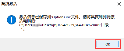 7. 只需将该Options.ini文件复制回无法联网的电脑上,将DiskGenius软件的安装目录中的options.ini文件替换掉,即可完成离线激活。