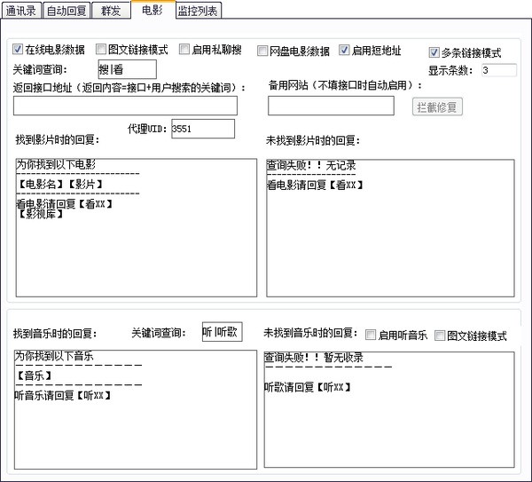 寻片机器人软件是一款微信群自动回复助手。微信寻片机器人特别版最主要的功能是帮助用户寻找影片,只要有人在群里发出电影名,机器人便会自动回复电影链接。寻片机器人能自定义设置入群公告,群内小游戏等,是一款非常好用的微信群娱乐软件。