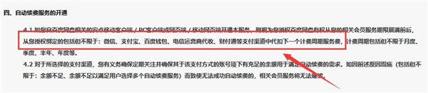 四、在取消自动续费服务前的所有扣费,不予于退还