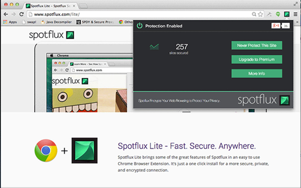 当您在站点上输入敏感信息时,Spotflux非常适合在公共wifi网络上浏览,或者仅用于加密和保护连接。