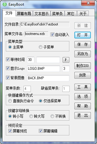 EasyBoot是一款集成化的中文启动光盘制作工具,它可以制作光盘启动菜单、自动生成启动文件、并生成可启动ISO文件。只要通过CD-R/W刻录软件即可制作完全属于自己的启动光盘。